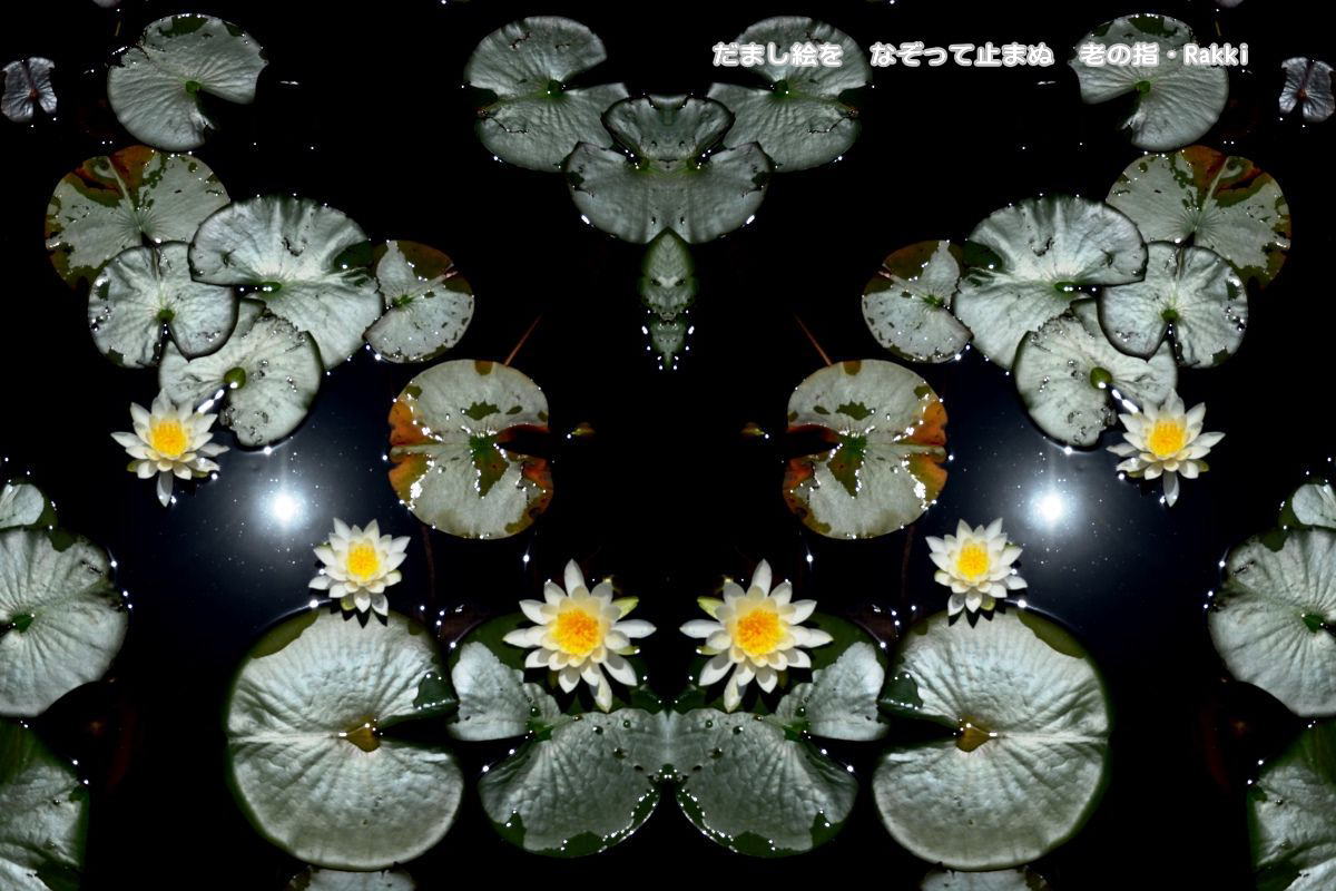 睡蓮の咲く池に太陽が二つ 花が音符♪でわらべ歌(^^♪・