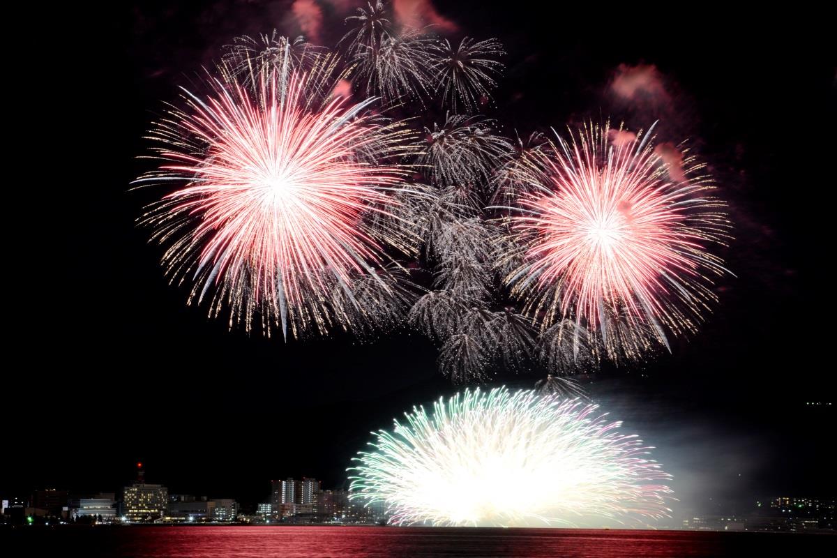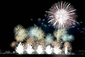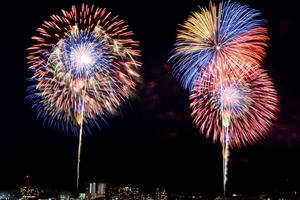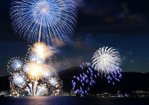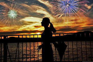 いつも場所で日本花火の会かもんちゃんと一緒に・ 若いグループと意気投合可愛いモデルさん有難う!