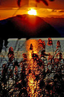 びわ湖湖畔で夕日と小白鳥を狙ったが