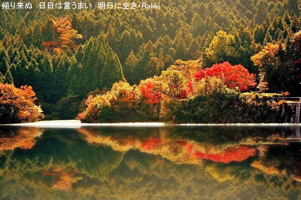 全く人けのない山の中のダム湖 日が西に傾き