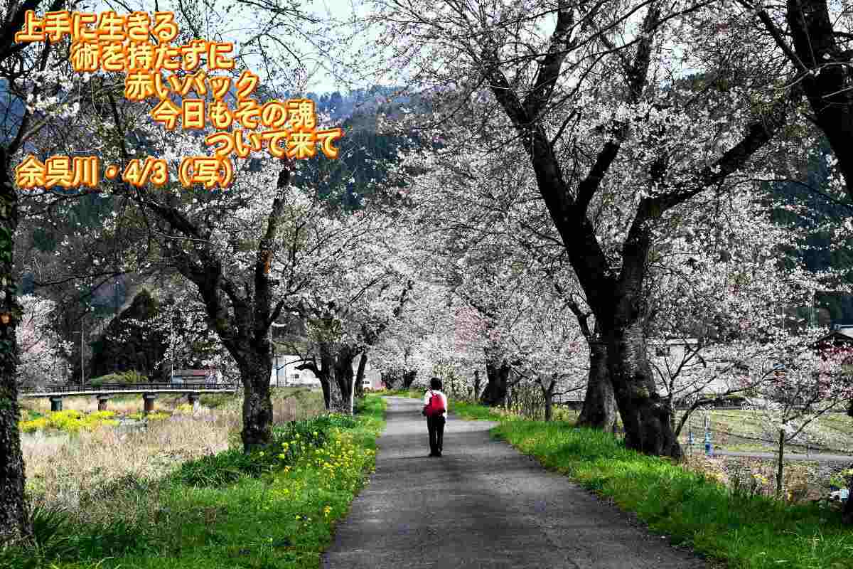 上手に生きる 術を持たずに 赤い帽子 今日もその魂 ついて来て 余呉川・4/3(写) 対岸の 花はいつでも 夢もよう・Rakki