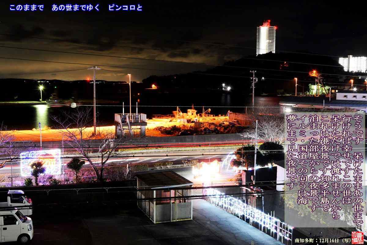 そうです 呆けたままあの世まで行ければ幸せです この世は呆けただけでは渡れませんから渡り遂せた幸運 これは港夜景です知多半島で泊まった部屋からの夜景です イルミネーション・国道その向うは海 夢に見た夜景です