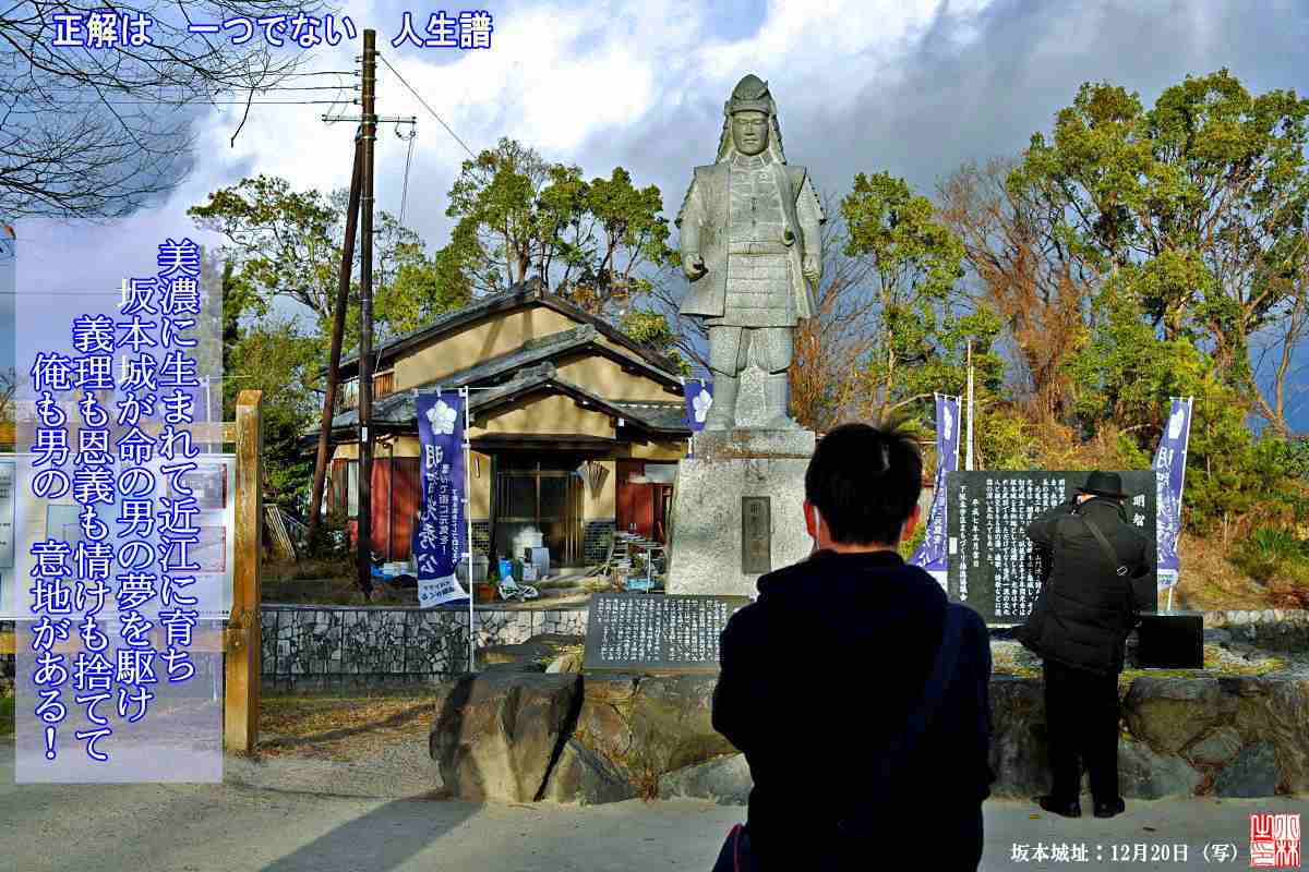坂本城址 明智光秀公の像