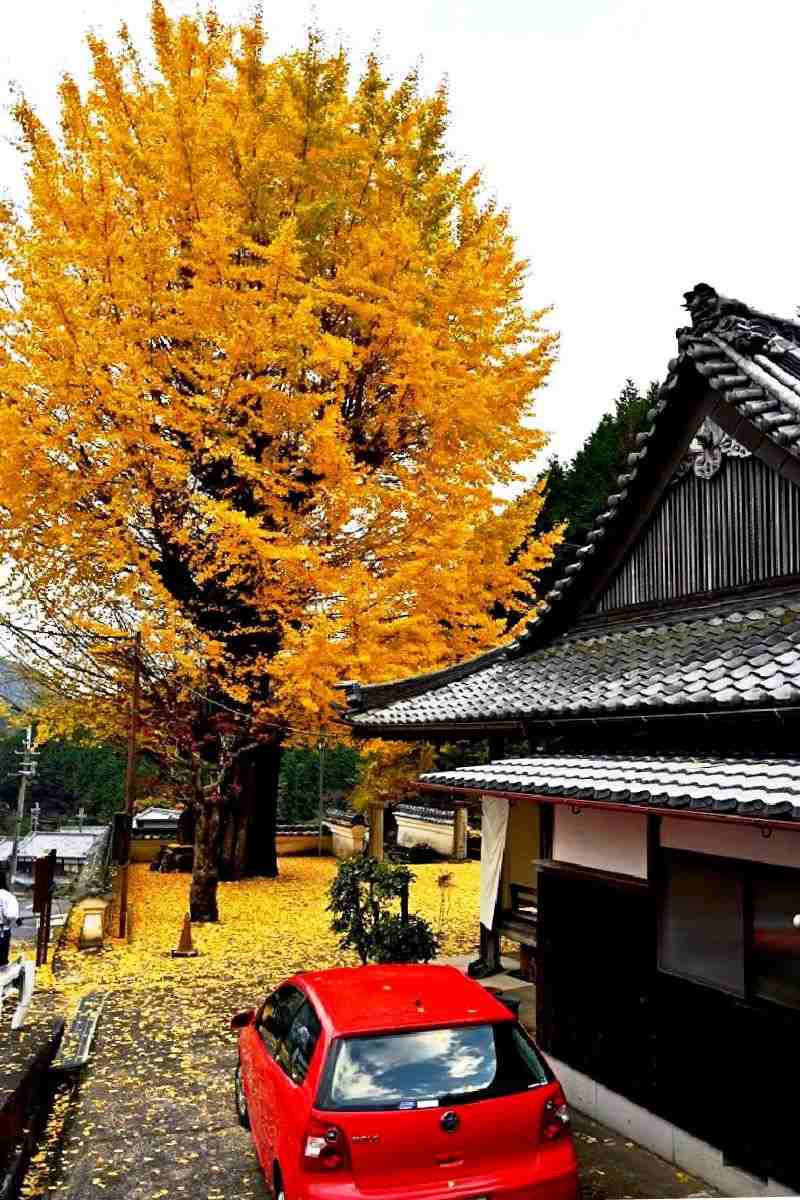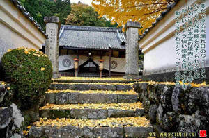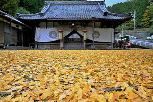 立ち寄って落葉銀杏の絨毯を撮り住職に出会い