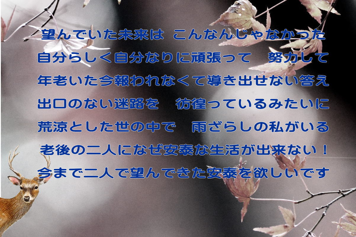 歳をとってから 誰かにことばを そのまんま 伝えようとしても 伝え側や受け取り側の そのときの気持ちのもちようで 理解に苦しむ 言葉がうまく出ないんだ しかし相手が人形や案山子であれば問題なし (ただのひとりごと)