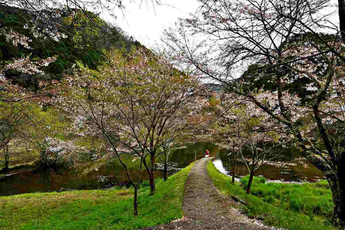 古き昔背後の山に自動菩薩があったがダムの建設で水没して 夏の渇水期に現れる昔の飛び石通路を渡って濡れ地蔵にお参り出来るときもある(土地の古老の話)