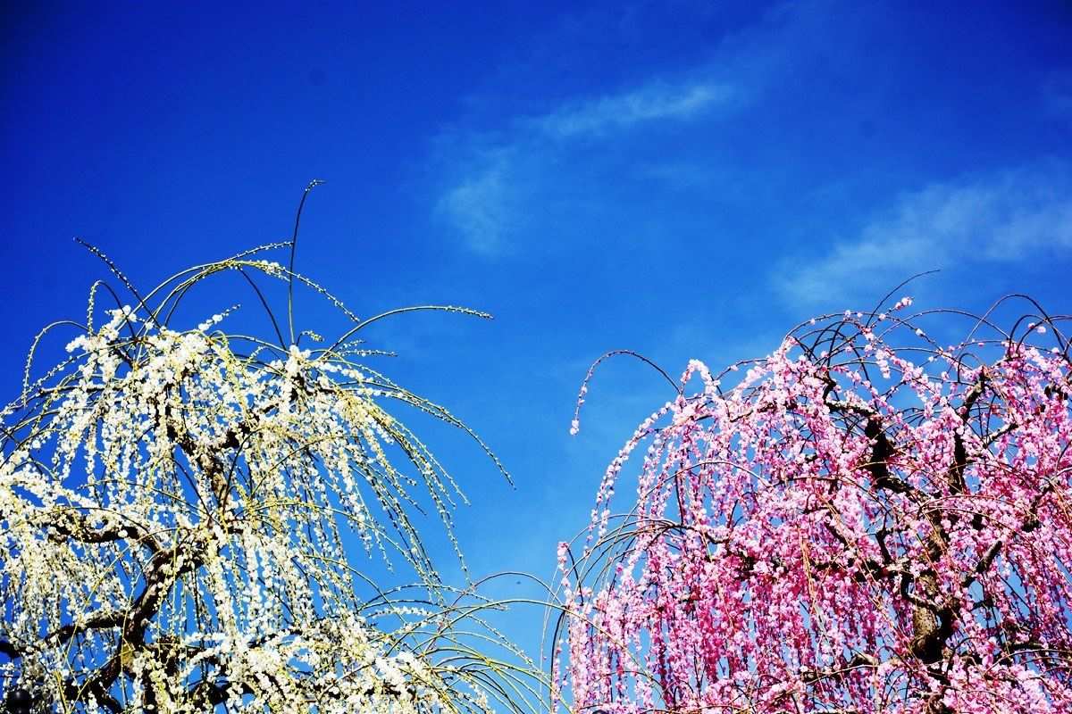 紅梅白梅並んでツイン 空にちぎれ雲並んでツイン