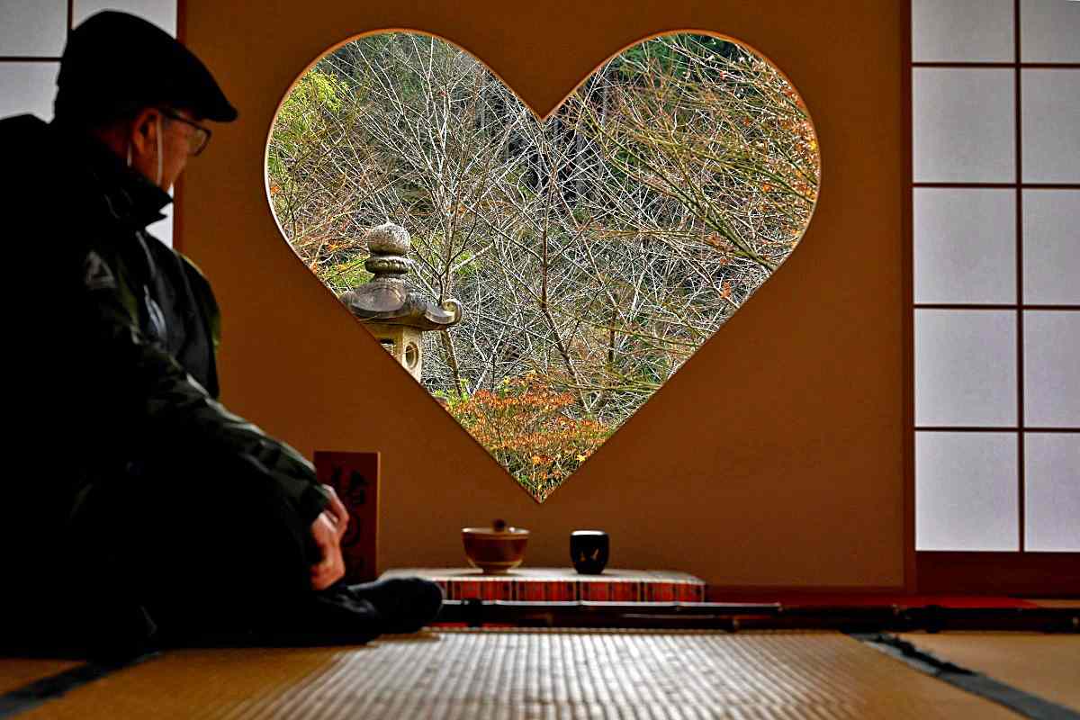 ハート窓の人気は未だ衰えてなく沢山の参拝客で