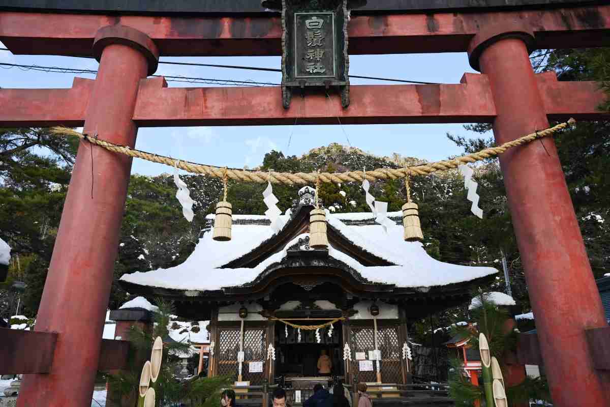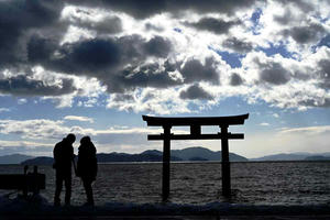 雪の降るなか琵琶湖一周して 初詣をしてきました。