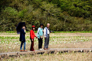縄が池ミズバショウ群生地に五箇山荘で出会った富山県射水市の長徳富二さんに案内をしていただく・出会いってありがたいですね