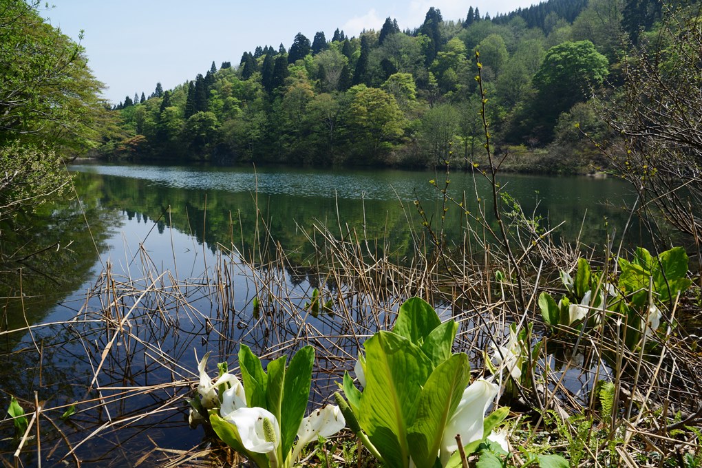 富山県南砺市豊かな緑の中に静かに広がる縄ヶ池。その湿地帯に清楚に群生するミズバショウは心を清らかに浄化してくれるようです。