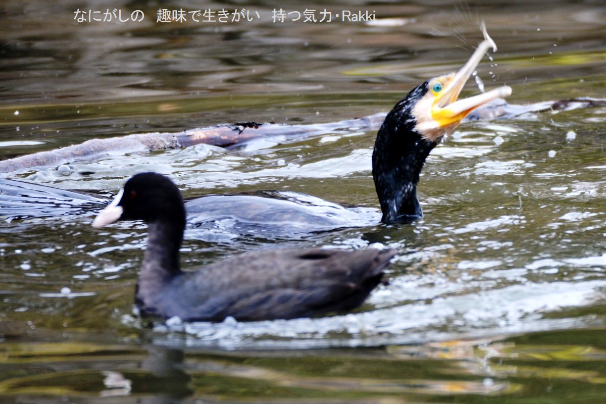 大きな魚を一気に飲み干します 生きとし生きるもの知恵?