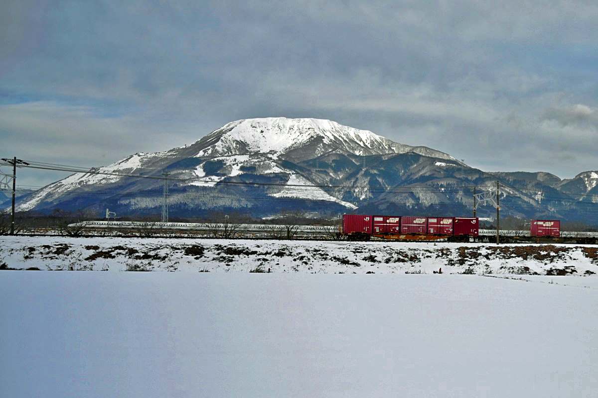 背後に雪の伊吹山