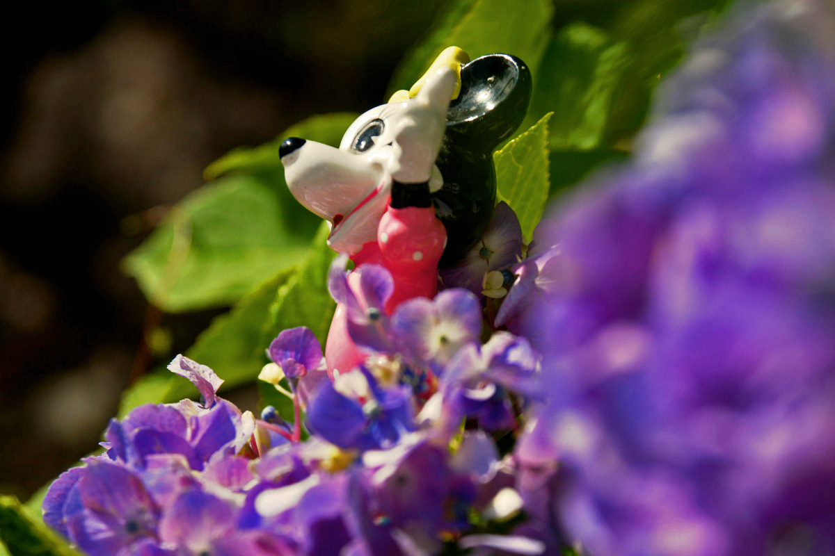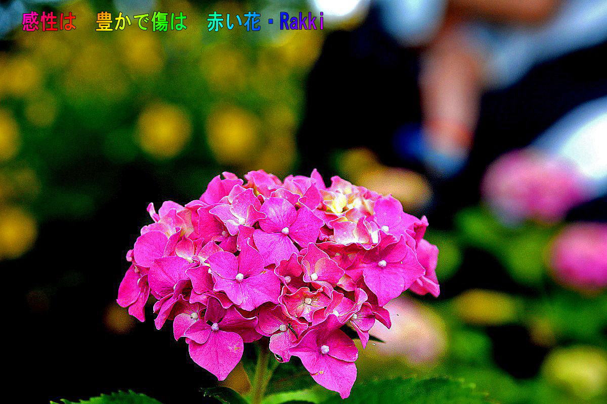 真っ赤なアジサイに美を添える様に立つ女性がいたが見知らぬ人ゆえ