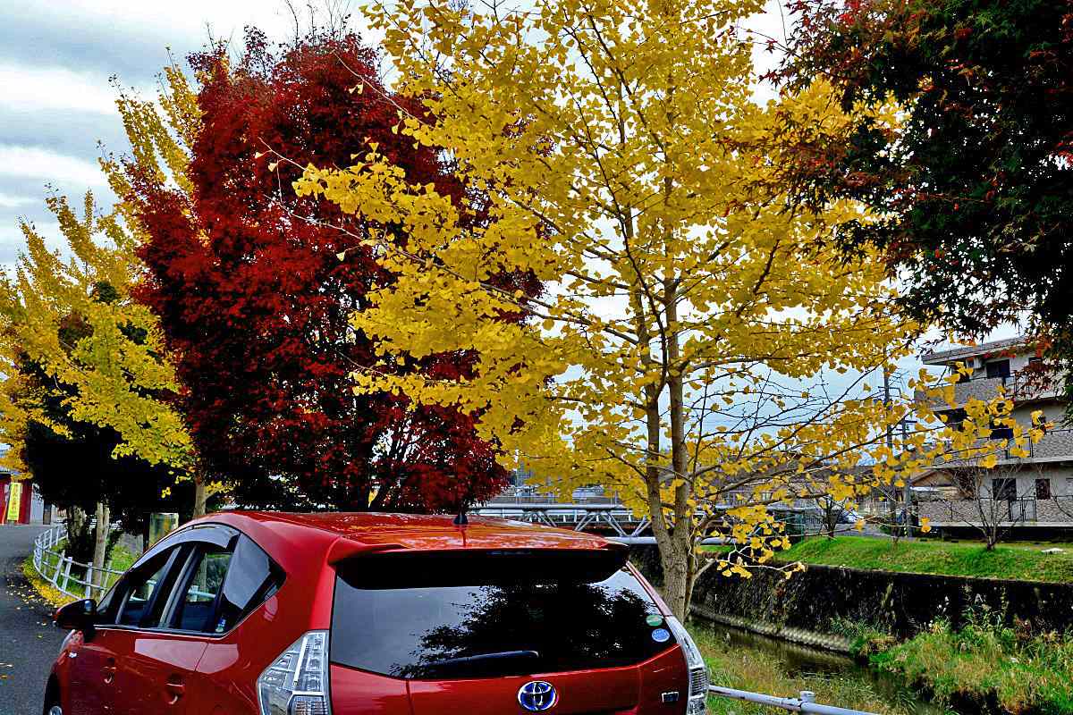 ふと見付けた紅葉のスポット早速カメラを取出し用意していると