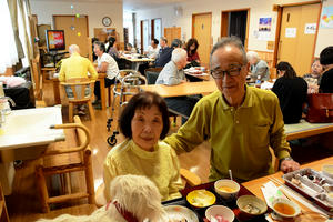 施設の敬老祝賀会に参加しました 特別な昼食で赤飯が付いていました