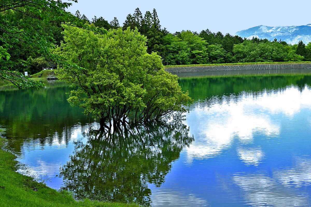 湖面んを渡る風に心も清く晴ればれ