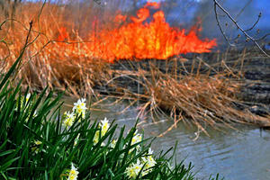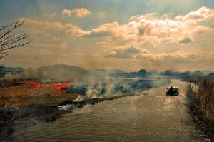 近江八幡市 まるやま水郷のヨシ焼の情報を貰った。調べてみたが開催場所 時間など何処に聞いても情報がない「コロナ禍か?」ようやく10日にある事だけは確認できた 朝早くから出かけるが既に数名が来ている。ヤット10時から始まると確認した(ヤレヤレ一服だ)
