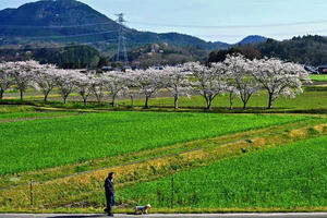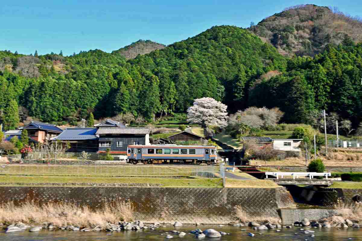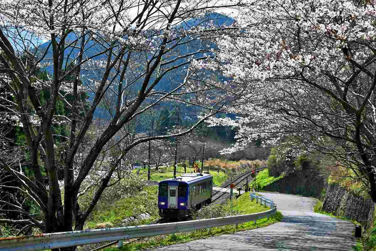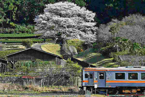 薄墨桜と茶畑と名松線の電車とのスリーショットが撮れます