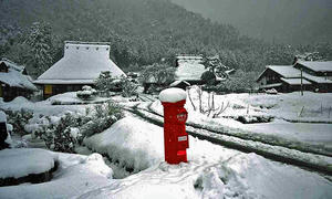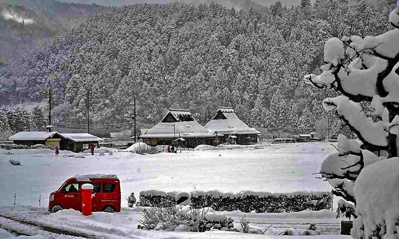 美山かやぶきの里の入口には真っ赤なポストがあります。目立つ存在なので、美山かやぶきの里のシンボルとも言えるでしょう。